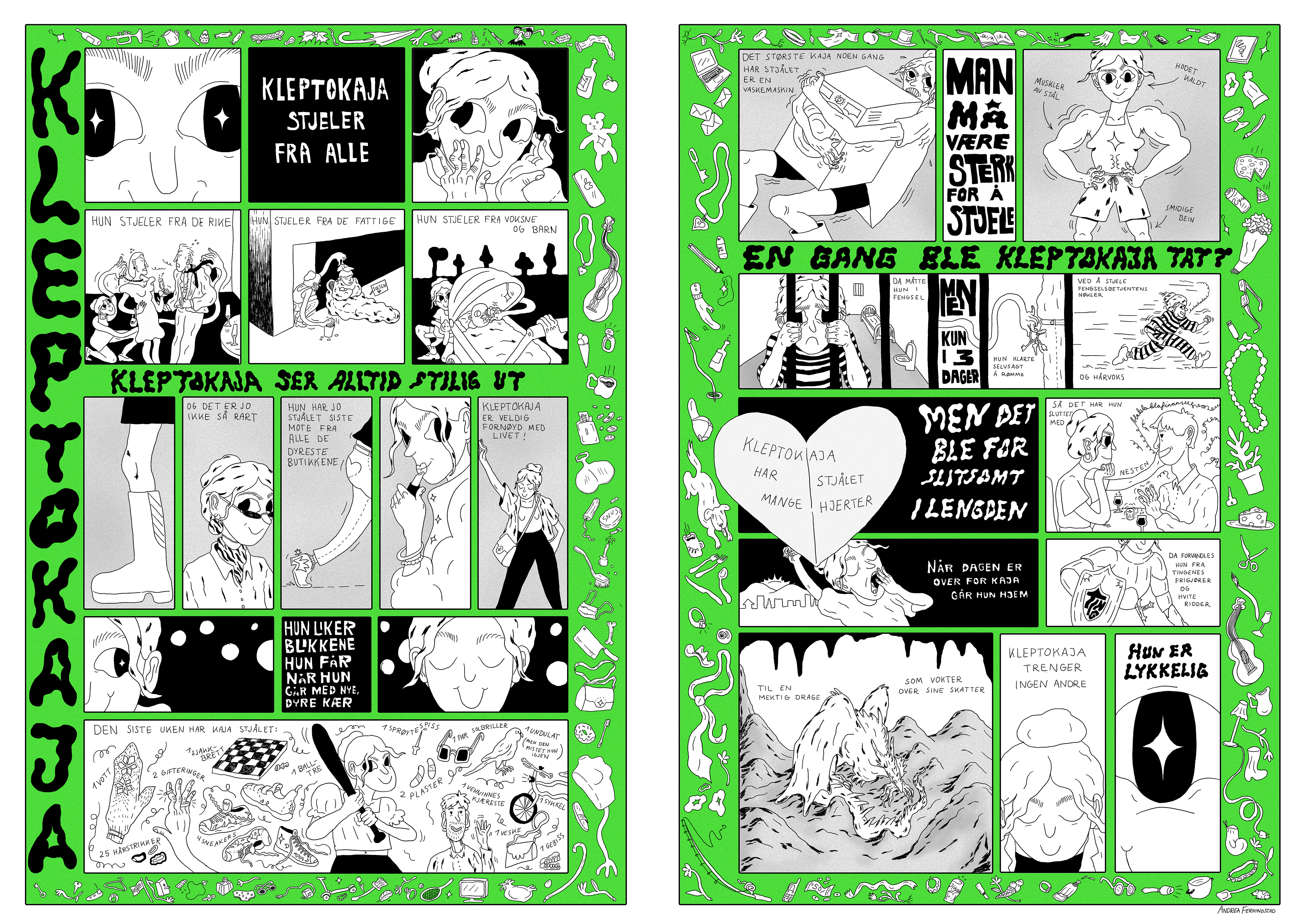 Kleptokaja er en kort, tosiders tegneserie jeg var så heldig å lage som bidrag til OCX-antalogien i 2021.