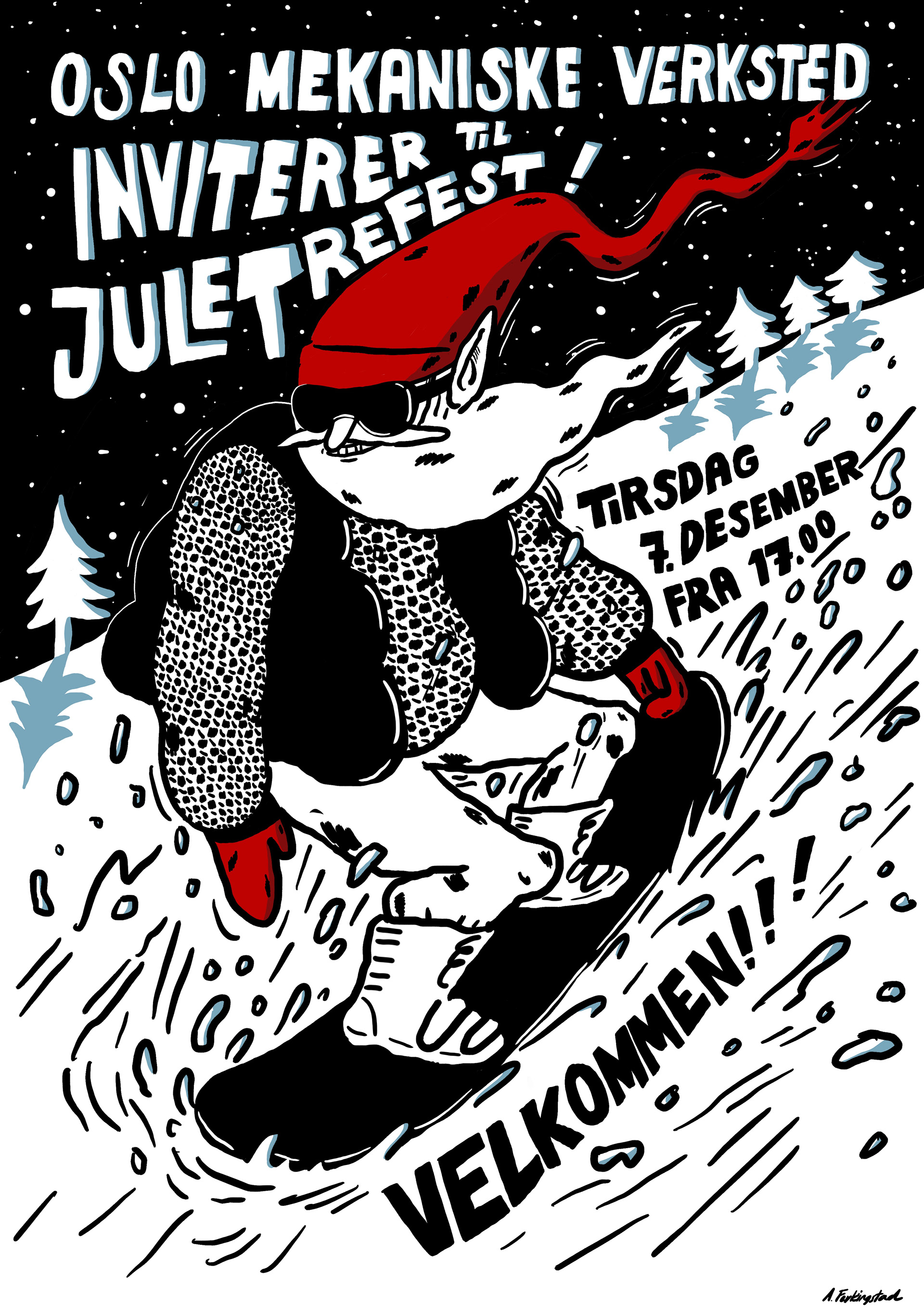 Plakat til den årlige juletrefesten på Oslo Mekaniske Verksted.